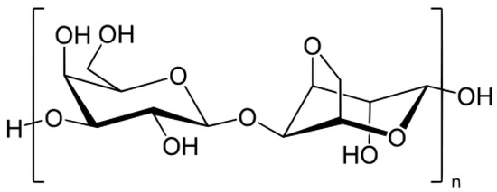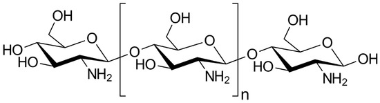 Chitosan (Figure 5) is another interesting biopolymer for the cosmetic industry. It is comprised of β-(1,4)-2-acetamide-D-glucose units linked to β-(1,4)-2-amino-D-glucose residues [76].