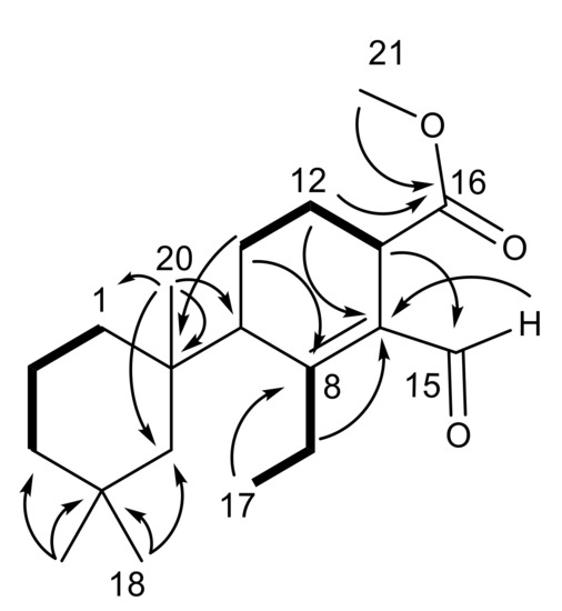 - Diaz-Marrero, A.R.; Dorta, E.; Cueto, M.; San-Martin, A.; Darias, J. Conformational analysis and absolute stereochemistry of ′spongian′-related metabolites. Tetrahedron 2004, 60, 1073–1078. [Google Scholar] [CrossRef]