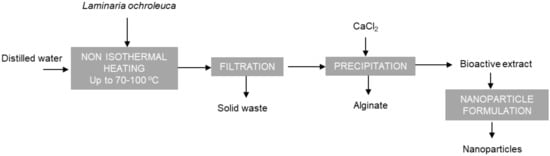 Simplified flow diagram of the aqueous process defined to obtain alginate and bioactive extract to formulate nanoparticles.
