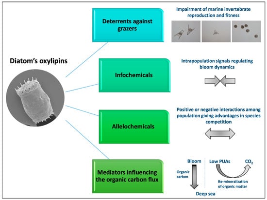The ecological role of diatom-derived oxylipins is extremely complex, since it consists of multiple functions affecting population dynamics of aquatic environments.