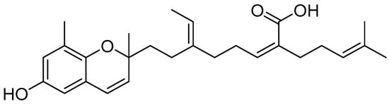 - Ahmadi, K.; Kumalaningsih, S.; Wijana, S.; Santoso, I. Antioxidative effect of tocotrienol rich fraction from palm fatty acid distillate on oxidative stress. Food Public Health 2013, 3, 130–136. [Google Scholar]