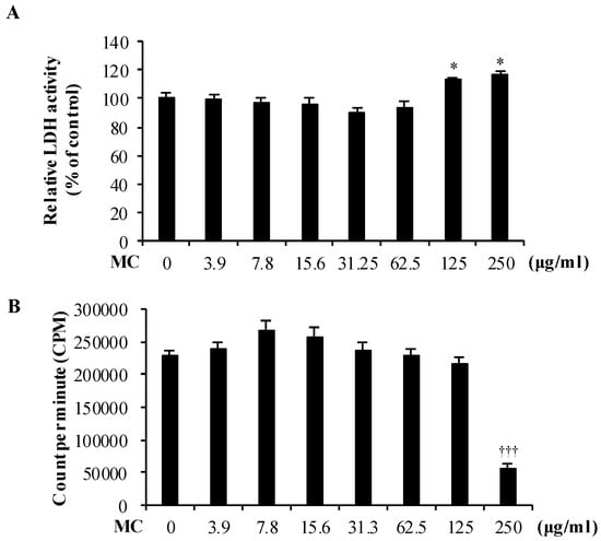 2.1. Low Concentration MC Is Not Cytotoxic and Does Not Affect Cell Proliferation of MLE-12 Cells