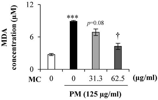 2.3. MC Suppresses the Lipid Peroxidation in PM-Exposed MLE-12 Cells