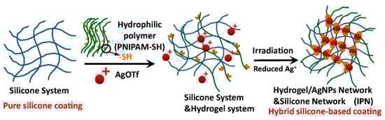 Schematic illustration of the formation of the pure silicone film and the hybrid coatings [73].