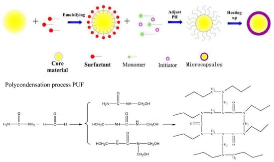 Mechanism of urea-formaldehyde microcapsule formation [75].