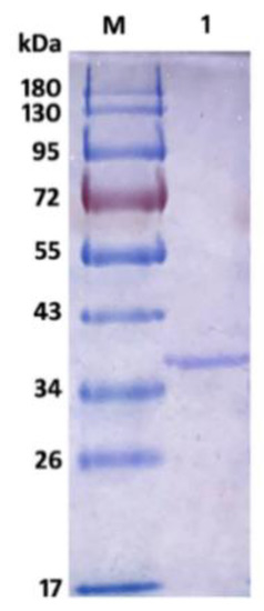 SDS-PAGE of purified AlyS02. Lane M, protein marker; lane 1, purified AlyS02.