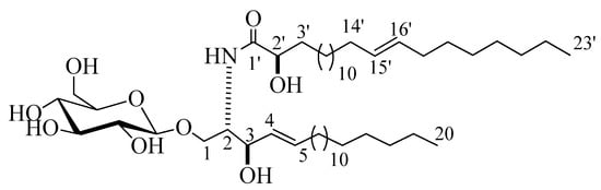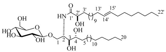 - Yamada, K.; Sasaki, K.; Harada, Y.; Isobe, R.; Higuchi, R. Isolation and structure of glucocerebrosides from the sea cucumber Holothuria pervicax. Chem. Pharm. Bull. 2002, 50, 1467–1470. [Google Scholar] [CrossRef][Green Version]
