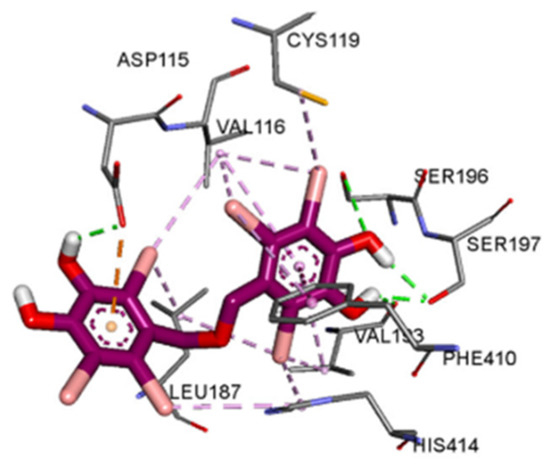 | 3.31 | 33.00 (a), 115.50 (b), µg/mL | (3-bromo-4-hydroxyphenyl) (3,4-dihydroxyphenyl)methanone [81] |