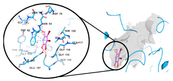 | 6.15 | 0.84 ± 0.12 (a), 3.73 ± 1.03 (b), nM, Ki | 3,4,6-tribromo-5-((methylsulfonyl)methyl)benzene-1,2-diol [111] |