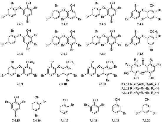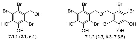| 7.2.11 | 1.26 (a), 32.7 (c) | 3,4-dibromo-5-(2,3-dibromo-4,5-dihydroxybenzyl)-6-(ethoxymethyl)benzene-1,2-diol [39] |