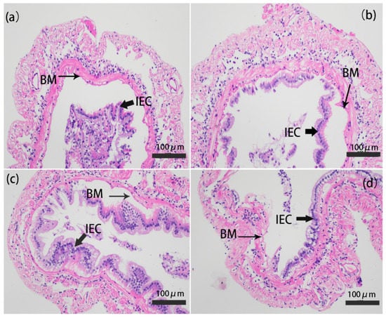 - Kamali Najafabad, M.; Imanpoor, M.R.; Taghizadeh, V.; Alishahi, A. Effect of dietary chitosan on growth performance, hematological parameters, intestinal histology and stress resistance of Caspian kutum (Rutilus frisii kutum Kamenskii, 1901) fingerlings. Fish Physiol. Biochem. 2016, 42, 1063–1071. [Google Scholar] [CrossRef]