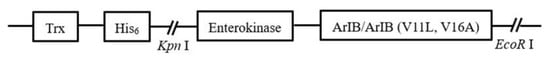 2.1. Construction of pET–ArIB and pET–ArIB (V11L, V16A) Expression Vector