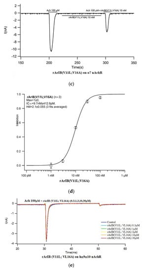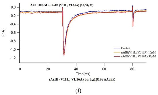 2.4. Effect of rArIB and rArIB (V11L, V16A) on ACh-Evoked Current of nAChRs