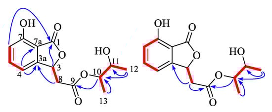 - Wang, Y.; Liu, H.-X.; Chen, Y.-C.; Sun, Z.-H.; Li, H.-H.; Li, S.-N.; Yan, M.-L.; Zhang, W.-M. Two new metabolites from the endophytic fungus Alternaria sp. A744 derived from Morinda officinalis. Molecules 2017, 22, 765. [Google Scholar] [CrossRef] [PubMed]