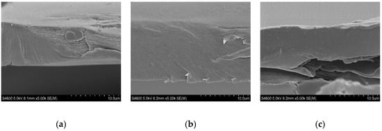 SEM (Scanning Electron Microscopy) images of cross-sections of (a) control films and chitosan films enriched with (b) E611 and (c) E805 exopolysaccharides.