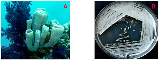 The Red Sea sponge Callyspongia siphonella (A) and the actinomycete Streptomyces coelicolor LY001 (B).