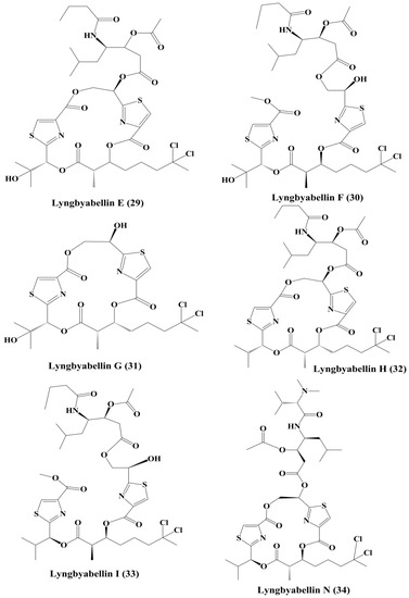 Isolated marine cyanobacteria-derived peptides (29–34).