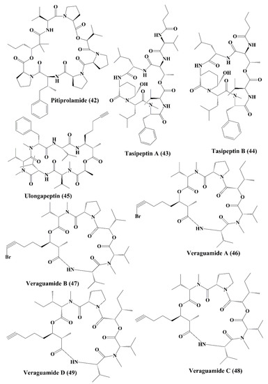 Isolated marine cyanobacteria-derived peptides (42–49).