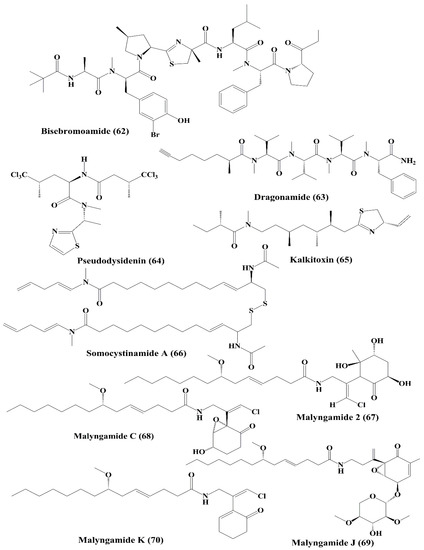 Isolated marine cyanobacteria-derived peptides (62–70).