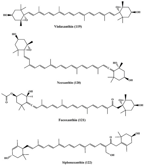 - Sugawara, T.; Ganesan, P.; Li, Z.; Manabe, Y.; Hirata, T. Siphonaxanthin, a green algal carotenoid, as a novel functional compound. Mar. Drugs 2014, 12, 3660–3668. [Google Scholar] [CrossRef] [PubMed]