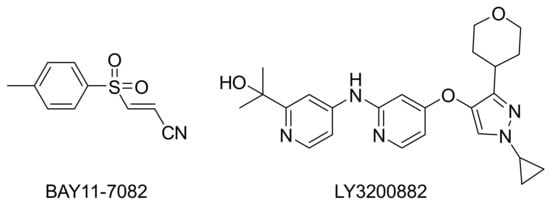 Chemical structures of references products BAY11-7082 and LY3200882.