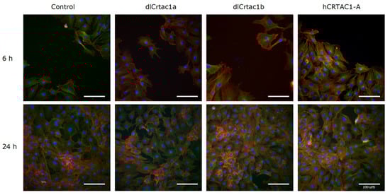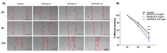 2.5.1. Effect of Vertebrate CRTAC1 on Scratch Recovery/Cell Migration