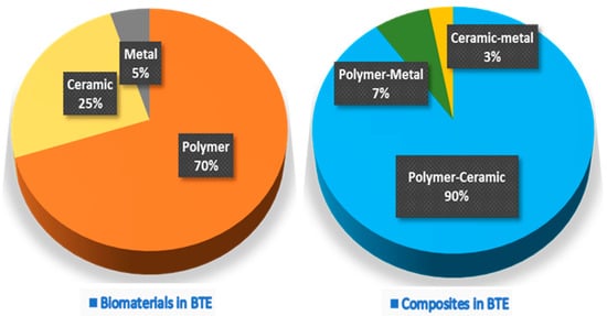 The proportion of pure biomaterials and their composites used in various BTE applications.