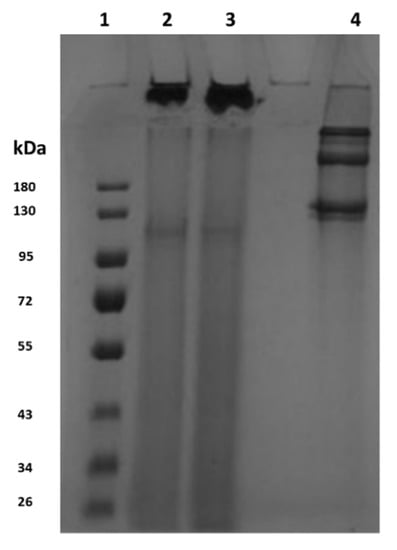 - Laemmli, U.K. Cleavage of Structural Proteins during the Assembly of the Head of Bacteriophage T4. Nature 1970, 227, 680–685. [Google Scholar] [CrossRef]