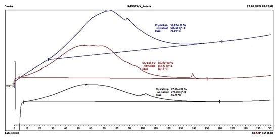DSC analysis of SCFMs. Thermograms of 3 mg of dry I. oros-derived membrane (blue line), S. foetidus-derived membrane (black line) and commercial porcine collagen membrane Bio-Gide® (red line).