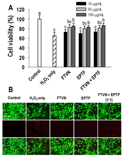 - Oh, Y.; Ahn, C.-B.; Yoon, N.Y.; Nam, K.H.; Kim, Y.-K.; Je, J.-Y. Protective effect of enzymatic hydrolysates from seahorse (Hippocampus abdominalis) against H2O2-mediated human umbilical vein endothelial cell injury. Biomed. Pharmacother. 2018, 108, 103–110. [Google Scholar] [CrossRef] [PubMed]