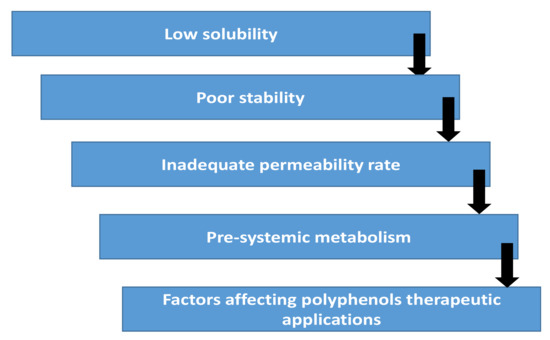 Factors affecting polyphenols therapeutic applications, replicated from Conte et al. [65] with permission.
