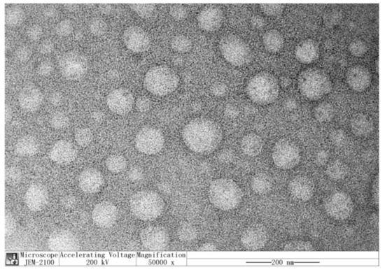 Transmission electron microscopy (TEM) image of phlorotannin@PVP nanoparticles (PPNPS). The concentration of PPNPS was 1 mg/mL, replicated from Qi et al. [66] with permission.