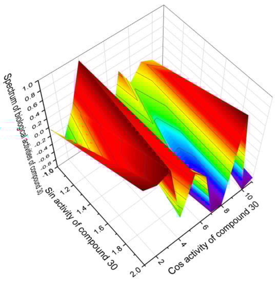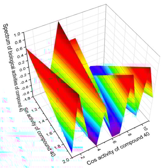 Some well-known computer programs can, with some degree of reliability, estimate the pharmacological activity of organic molecules isolated from natural sources or synthesized compounds [,,]. It is known that classical SAR methods are based on the analysis of (quantitative) structure–activity relationships for one or more biological activities using organic compounds belonging to the same chemical series as the training set [].
