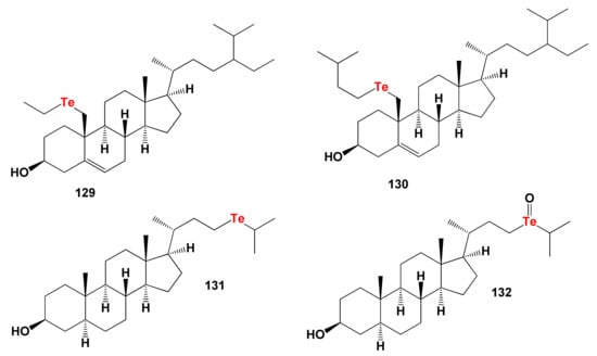 - Ibrahim-Ouali, M. First total synthesis of 11-tellura steroids. Tetrahedron Lett. 2010, 51, 3610–3612. [Google Scholar] [CrossRef]