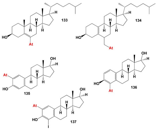 - Visser, G.W.M.; Diemer, E.L.; Kaspersen, F.M. The preparation of aromatic astatine compounds through aromatic mercury compound’s part II: Astatination of pyrimidines and steroids. J. Label. Comp. Radiopharm. 1981, 18, 799–807. [Google Scholar] [CrossRef]