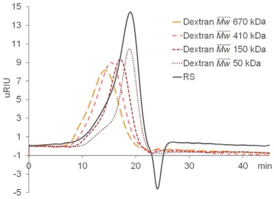 Gel permeation chromatography (GPC) of RS and the dextran standards.
