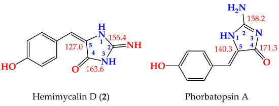 - Youssef, D.T.A.; Shaala, L.A.; Alshali, K.Z. Bioactive hydantoin alkaloids from the Red Sea marine sponge Hemimycale arabica. Mar. Drugs 2015, 13, 6609–6619. [Google Scholar] [CrossRef]