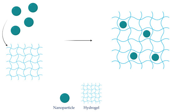 Concept of the primary and secondary vehicles to avoid some limitations of hydrogels represented as nanoparticles (primary) in hydrogel (secondary). The illustration is created with BioRender.com.