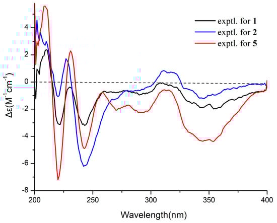 Experimental ECD spectra of compounds 1, 2, and 5.