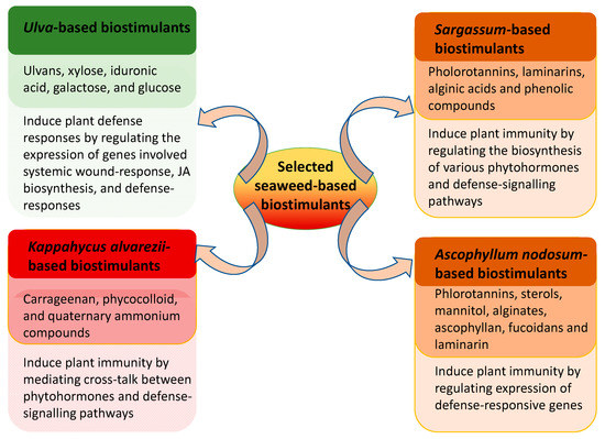 The various modes of actions of seaweed-derived biostimulants largely depends on the raw materials and the applied methods of extraction [20]. In this review, we discuss similarities and differences among the various modes of actions of selected extracts derived from seaweeds.