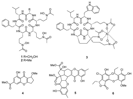 Antifungal activity is not rare for metabolites of marine sediment-derived fungi. Presumably, these compounds play a key role in interspecies relationships within fungal communities. Moreover, metabolites that inhibit the growth of aquatic and plant fungal pathogens are of particular importance from a practical point of view.