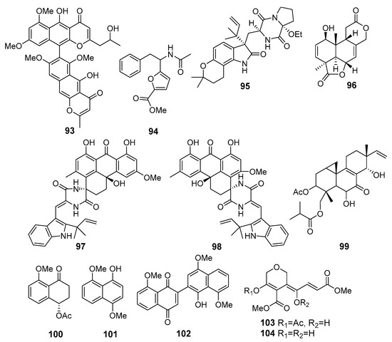 The cytotoxic metabolites (93–104) of marine sediment-derived fungi.