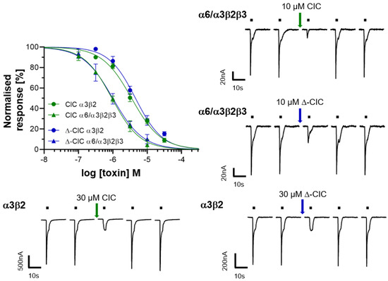 2.2. Electrophysiology of CIC and ∆-CIC on Neuronal nAChRs