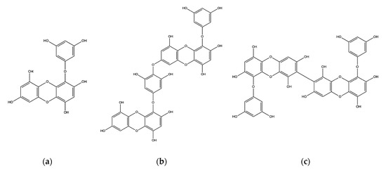 Structures of (a) eckol, (b) dieckol, and (c) 8,8′-bieckol.