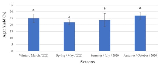Agar content analyzed seasonally. The extraction yield results are expressed as mean ± standard deviation (n = 3). a The letters indicate no significant differences at the p-value < 0.05 level.