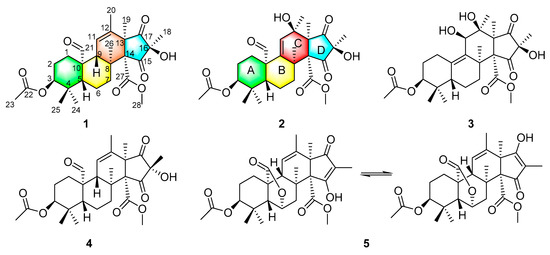 Two known compounds 4 and 5 were identified as andrastone E (4) [22] and citreohybridonol (5) [11], respectively, by comparing their spectroscopic data with those reported previously in the literature.