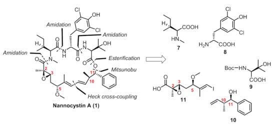 - Wang, Z. The Chemical Syntheses of Nannocystins. Synthesis 2019, 51, 2252–2260. [Google Scholar] [CrossRef]