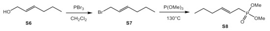 The construction of Horner reagent was commenced with (E)-hex-2-en-1-ol (S6), by the treatment of PBr3 and trimethyl phosphate (Scheme 7).