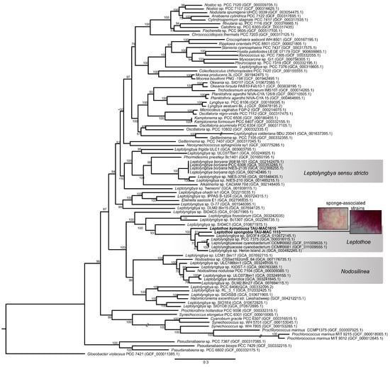 - Konstantinou, D.; Voultsiadou, E.; Panteris, E.; Gkelis, S. Revealing new sponge-associated cyanobacterial diversity: Novel genera and species. Mol. Phylogenet. Evol. 2021, 155, 106991. [Google Scholar] [CrossRef] [PubMed]
