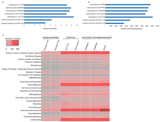 3.3. Genome Sequencing and Assembly of Sponge-Associated Cyanobacteria